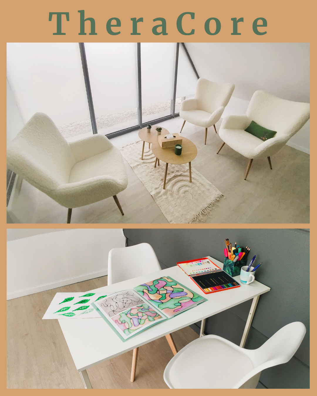 Ici, vous pouvez prendre rendez-vous pour un accompagnement psychologique ou une séance d’art-thérapie individuelle, au centre TheraCore à Wavre ou en téléconsultation, où que vous soyez. Vous pouvez également vous inscrire à L'atelier mensuel Empreintes de vie à Louvain-la-Neuve, un espace d’expression et de créativité.